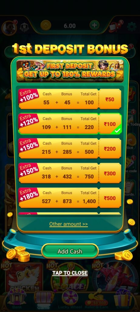 hello dosto jab aap Apne Game ko open kijiyega to open hone ke bad sabse uper me + (plus) Add cash ka option dikhai