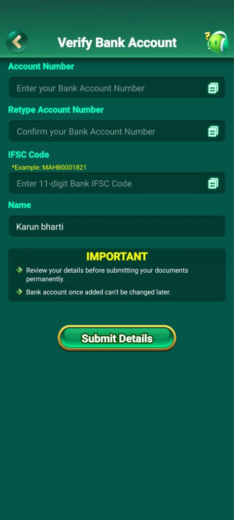 Apne Application Me Bank Acount Kaise add kare